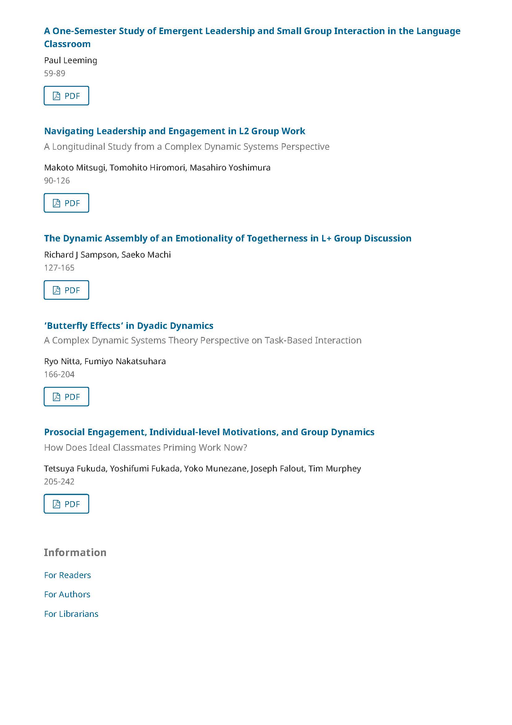 Nakamura, H., & Hiromori, T. (in press). Understanding task characteristics and flow experience among Japanese EFL high school students. HELES Journal, 25.