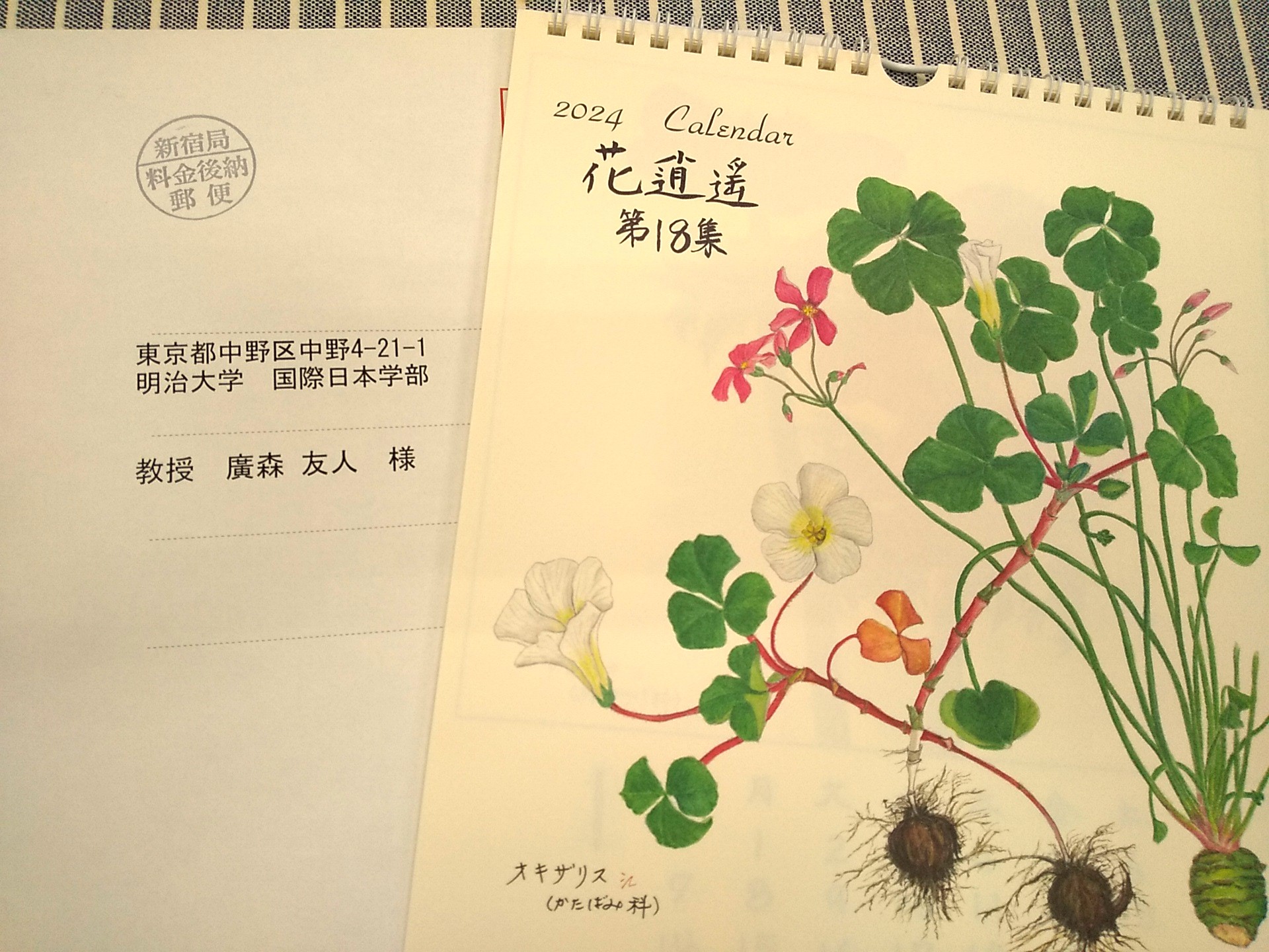 この時期,いつも卒業生が職場からカレンダーを送ってくれるのですが,奥さんが大のお気に入りで,毎年キッチンの壁に貼って使わせてもらっています。そのカレンダーが今年も届きました!土屋くん,ありがとう!(海外勤務,頑張ってるかな?)